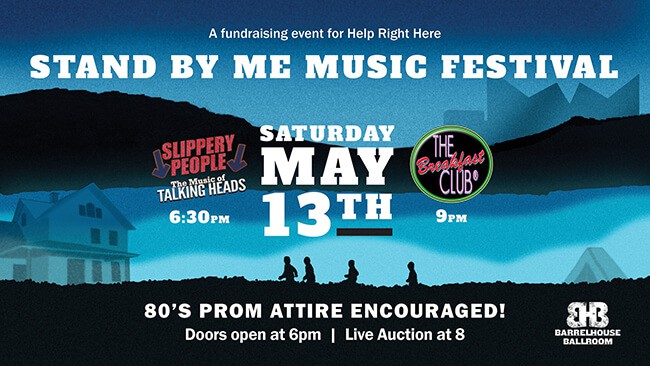 First Annual "Stand by Me" Music Festival benefiting Help Right Here. 80's Prom Attire! Doors open at 6. Slippery People at 6:30, Live Auction at 8 and Breakfast Club headlining at 9! Come support our […]